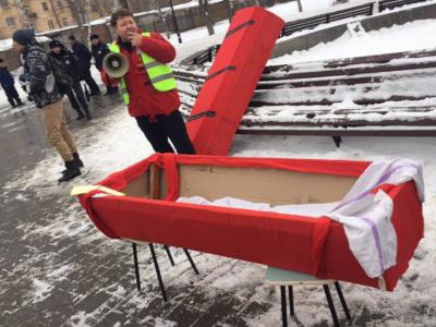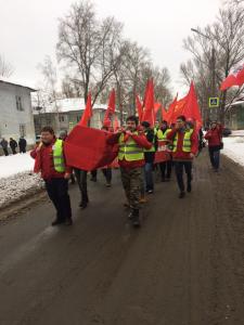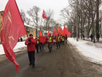 Марш стартовал от перекрёстка улиц Свободы и Краснодонской. Протестно настроенная молодёжь с красными знамёнами, растяжками и лозунгами пронесла по улице Свободы в сквер Родина гроб капитализма.
