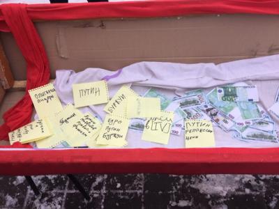 В сквере перед собравшимися выступили организаторы и участники шествия. Были озвучены требования: остановить геноцид народа, поднять стипендии на достойный уровень, а так же отправить Президента Путина В.В. в отставку вместе с буржуазным Правительством РФ. Организаторами было предложено положить в гроб к капитализму то, с чем митингующие хотели бы расстаться в этом году.
