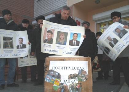 В Чите 25 декабря коммунисты провели акцию «Позорный полк». Они вышли с плакатами, на которых изображены проголосовавшие за антинародный закон депутаты Законодательного собрания края, и выбросили их на «политическую свалку».