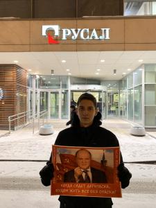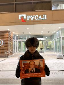 16 января московские комсомольцы провели пикет перед офисом «Русала» в Москве.
