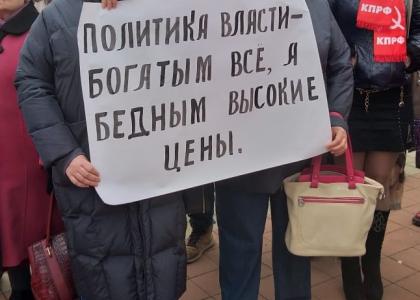 На протестный митинг КПРФ пришли более сотни неравнодушных жителей района. Открывая мероприятие, первый секретарь райкома партии, депутат городского Совета Е.П. Иванов, напомнил «достижения» из новейшей истории России. Более четверти века нынешняя власть последовательно разрушала промышленность и сельское хозяйство страны, при этом постоянно, под разными предлогами, «залезала в карманы» граждан. Обещания властей превращаются в пустой звук: «прорывы» так и не состоялись. Теперь, при очередных «благих намерениях», продолжается циничное ограбление россиян: поднят пенсионный возраст, увеличена ставка НДС, продолжается рост цен и тарифов. По мнению коммунистов, единственным выходом из тупика может быть только отставка правительства Медведева, смена социально-экономического курса и реализация предложений КПРФ из программы «10 шагов к достойной жизни».