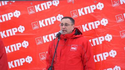 Открыл митинг первый секретарь Оренбургского ОК КПРФ, руководитель фракции КПРФ в ЗС области Максим Амелин: