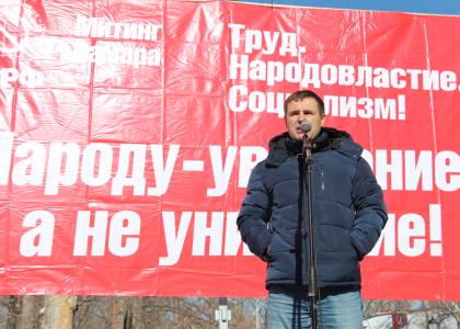 "Сегодня мы пришли с вами заявить - народу уважение, а не унижение! Что мы видим с вами? Какому унижению подвергается наш многонациональный народ! Такое ощущение, что чиновники устроили соревнование, как еще хуже сделать нашему народу, какие еще законы принять, чтобы поиздеваться над нашими гражданами. Пенсионная реформа, повышение НДС, рост тарифов, мусорная реформа. Они направлены чтобы выкачать деньги из населения. Что необходимо сделать, чтобы прекратить это издевательство - прекратить избирать Единую Россию во все органы власти. Выгнать их отовсюду! Яркая возможность сделать это будет 8 сентября - в единый день голосования. Скажем решительное НЕТ грабительским реформам! Изберем депутатов-коммунистов! И тогда над Кремлем снова взвеет Красный флаг, а первыми шагами коммунистов в случае победы станет отмена ненавистных народу реформ и смена социально-политического курса".