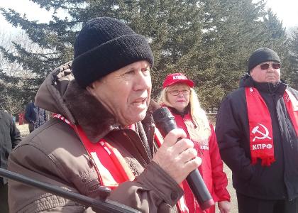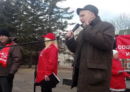 Открыл митинг руководитель регионального отделения КПРФ Владимир Фишман. Взяв в руки микрофон, он подверг резкой критике печальные реалии современной России.