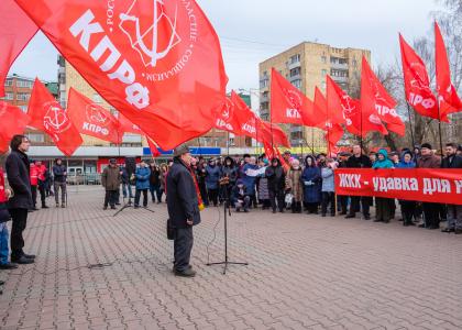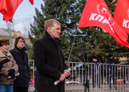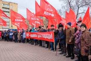 Участники митинга осудили провокации против лидера КПРФ и народно-патриотической оппозиции Г. А. Зюганова, кандидата на пост президента РФ П. Н. Грудинина.