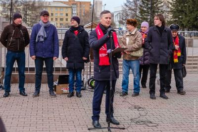 На мощной эмоциональной волне на Красной площади Красноярска прошёл митинг протеста в рамках Всероссийской акции протеста в поддержку социально-экономических прав граждан. Тон выступлениям задало зажигательное слово секретаря по идеологии крайкома партии Александра Амосова, которым он открыл акцию.