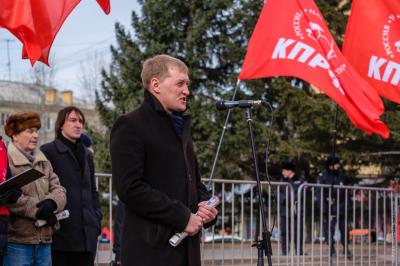 Участники митинга осудили провокации против лидера КПРФ и народно-патриотической оппозиции Г. А. Зюганова, кандидата на пост президента РФ П. Н. Грудинина.