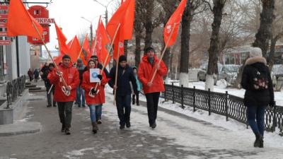 Перед началом акции коммунисты, комсомольцы, представители общественных организаций «Дети войны», «Надежда России», «Русский лад» и других движений прошли колоннами с красными знамёнами от здания краевого комитета КПРФ до Театральной площади по трём главным улицам города, раздавая листовки и партийные газеты и приглашая прохожих выразить своё мнение на митинге.