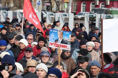 В начале митинга участники единогласно выразили недоверие Центральной избирательной комиссии, которая отказалась передавать вакантный мандат депутата Государственной Думы от КПРФ Павлу Грудинину и потребовали досрочного прекращения их полномочий. Ведь решение наделить статусом парламентария руководителя народного предприятия было принято Президиумом ЦК КПРФ, и избирательная комиссия не имела никаких правовых оснований даже обсуждать давать или не давать мандат избранному народом кандидату.