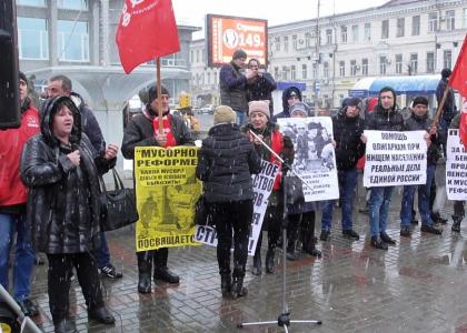 Участники митинга пришли с лозунгами: «Пенсионная и мусорная реформы – лицо власти», «Нет росту цен, тарифов и мусорных куч», «Исаев! Мусор сам не растает!», «Минздраву не нужны дети?», «Против «оптимизации» здравоохранения!» и др.