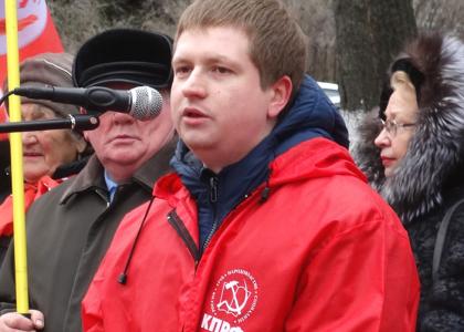 Затем ярко, эмоционально выступил 1-й секретарь КРО ЛКСМ РФ, член ЦК ЛКСМ РФ, 1-й секретарь Железнодорожного РК КПРФ А.И. Понарин.