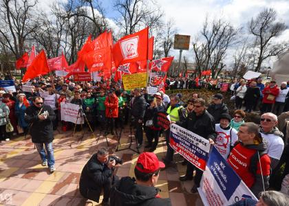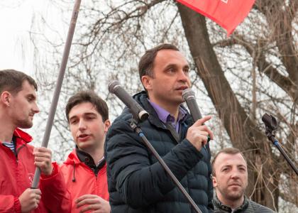 Митинг открыл и вел второй секретарь краевого Комитета партии, рукводитель фракции КПРФ Заксобрания края П.В. Соколенко.