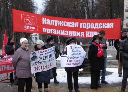 КПРФ проводили съезд обманутых дольщиков, выступили в Государственной Думе, встретились с представителями правоохранительных органов. Вопрос рассмотрела Государственная дума, пригласили министров, составили «дорожную карту», вызвали губернаторов. В Калужских СМИ сообщалось, что калужским обманутым дольщикам помогли, печатались фотографии с представителями власти и обманутыми дольщиками, публиковалось что все вопросы сняты, до конца года вопрос с квартирами будет урегулирован. Год закончился, и обманутые дольщики вышли на митинг с плакатами.