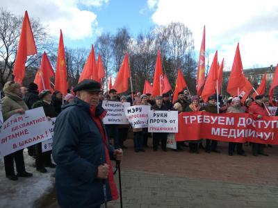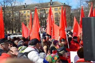 Более 400 человек собралось в Ярославле 23 марта на митинг в защиту социально-экономических прав граждан.