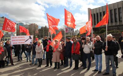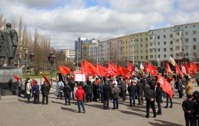 В Калининграде, 31 марта, в рамках всероссийской акции протеста, организованной КПРФ, прошел митинг под названием «Защитим интересы трудящихся – сохраним Россию!» На площади рядом с памятником Ленину собралось около двухсот калининградцев.