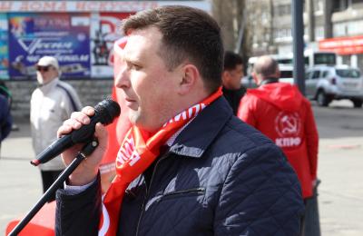 Перед участниками митинга выступил недавно избранный первый секретарь Калининградского обкома КПРФ Буланов Максим Васильевич. Он начал свою речь с того, что тема митинга крайне важная, что именно она была центральной на Пленуме ЦК КПРФ, который только что прошел в Москве. Там обсуждались социально-экономические права трудящихся в контексте целостности и безопасности нашей страны.