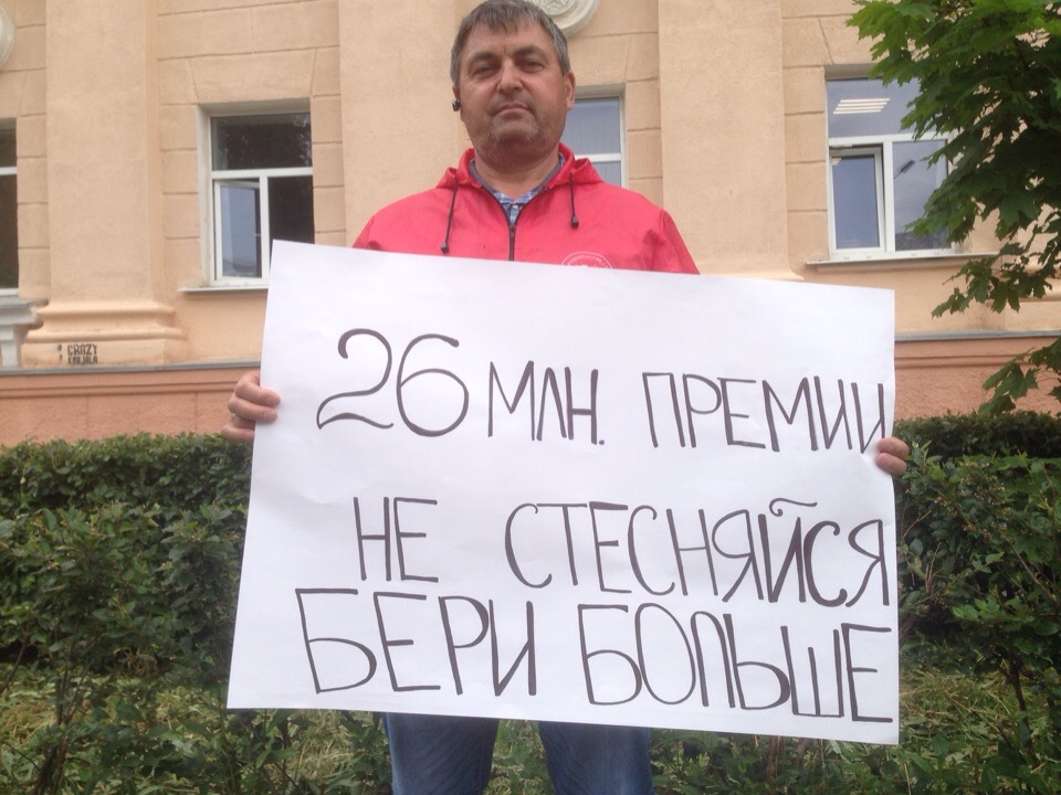 Карельские коммунисты провели одиночные пикеты у административного здания на проспекте Карла Маркса в Петрозаводске, где располагается офис лесопромышленного холдинга "Кареллеспром". Активисты КПРФ вышли к зданию с плакатами "26 миллионов премии. Не стесняйся, бери больше!" и "Артур, Паша, Вова, "Кареллеспром" - не ваша корова!"