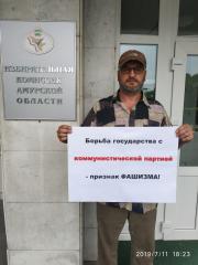 11 июля в Благовещенске состоялась серия одиночных пикетов против произвола властей в северокавказской республике. Напомним, верховный суд Карачаево-Черкесии снял с выборов в Народное собрание республики список кандидатов, выдвинутых КПРФ. После вынесения решения судом, избирательная Комиссия Карачаево-Черкесии отказала в регистрации списка КПРФ. Коммунисты всей страны назвали эти действия судебным произволом и открытой борьбой действующей власти с КПРФ.