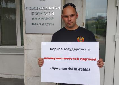 Амурское отделение партии выражает солидарность с товарищами, которые подвергаются политическому преследованию. В знак протеста у здания областной избирательной комиссии и в других районах города были организованы одиночные пикеты. Амурское отделение КПРФ неоднократно сталкивалось с произволом и открытым давлением в отношении своих товарищей. Мы говорим, что фашизм начинается с расправы над коммунистами и требуем прекратить политические репрессии.