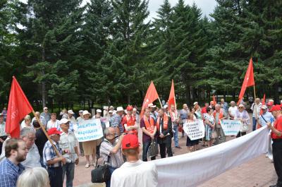 Митинг в рамках всероссийской акции протеста в защиту экс-кандидата в президенты России, директора подмосковного совхоза имени Ленина состоялся сегодня в Биробиджане. Участие в правозащитной акции, начавшейся в полдень на городской площади Дружбы, приняли активисты местного отделения КПРФ и сторонники партии.
