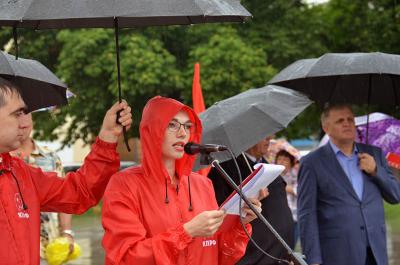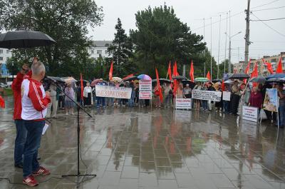 Охваченные единым порывом, площадь заполнили представители КПРФ – депутаты, активисты, рядовые коммунисты и комсомольцы. Бок о бок с партийцами – обманутые дольщики, представители многодетных семей, неравнодушные жители города, озабоченные мусорной проблемой, насущными вопросами экологии, обездоленные дети войны, ветераны армии. В последние дни лето не радует ростовчан и всех жителей Дона щедрым южным солнцем и теплом, вот и сегодня небо затянуто темными тучами, идет дождь. Природа хмурится, и это полностью соответствует серьезной сосредоточенности и благородной решимости всех, кто в этот субботний день приняли участие во Всероссийской акции протеста у величественного памятника вождю мирового пролетариата.
