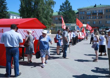 - Наш пикет открывает акцию протеста, и это в какой-то степени почётно, - говорит организатор пикета, первый секретарь Куйбышевского МО КПРФ Анатолий Казак, - Надеемся, что на следующих пикетах тоже будет много неравнодушных людей. Мы собрались в самом центре Амурского поселка, потому что здесь всегда людно, здесь сегодня базарный день. Многие вот торгуют ягодами, а мы им рассказываем, что наша власть доходит до того, что скоро запретит торговать на рынке ягодами и грибами, собранными в лесу. И спрашиваем: «Не надоело ли вам выбирать собственных грабителей?»