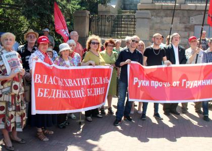 — На выборах Президента РФ 2018 года Путин не только не упомянул о планируемой пенсионной реформе, но и много лет до этого играл роль ее ярого противника. В итоге же забыл все свои обещания и за рекордный срок вместе с потерявшим всякое доверие Правительством Медведева, привел в исполнение людоедский закон о повышении пенсионного возраста, мотивируя это тем, что самая богатая в мире страна не сможет обеспечить нищенские пенсии. Залезли в карман к самым незащищенным, вместо введения прогрессивной шкалы налогообложения, национализации основных отраслей и других мер пополнения государственной казны. Не простим власти унижения пенсионной реформой! Нищий пенсионер – позор государства!