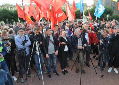 Свыше трехсот человек приняли участие в состоявшемся 15 августа 2019 года митинге на площади Ленина, организованном Санкт-Петербургским отделением КПРФ в рамках Всероссийской акции протеста «За честные и чистые выборы! За власть закона и социальные права граждан!».