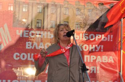 Перед участниками митинга выступил кандидат от КПРФ на пост губернатора города, депутат Госдумы, известный кинорежиссёр В.В. Бортко. Владимир Владимирович охарактеризовал кампанию по выборам депутатов муниципальных советов города как беспрецедентно грязную и сопровождающуюся массовым попранием прав граждан при попустительстве правоохранительных органов. Также Владимир Бортко выступил с критикой решения горизбиркома о создании более семи десятков участковых избиркомов на дачных участках в Ленинградской и даже Псковской областях.