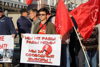 Вместе с коммунистами на митинг вышли работники муниципального предприятия «Томск САХ», которое занимается уборкой улиц города. После реорганизации МУП «Спецавтохозяйство» их зарплаты упали до уровня прожиточного минимума. Уборочная техника простаивает из-за поломок, на ремонт денег также нет.