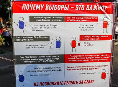 — Давно доказано на практике, что, когда явка не превышает 30%, правящая партия выигрывает просто за счёт административного ресурса – бюджетников, МЧС, военных, то есть людей, которые косвенно зависят от государства». Коммунист подчеркнул, что вбросы бюллетеней, «карусели», когда один человек голосует несколько раз, также возможны только при низкой явке.