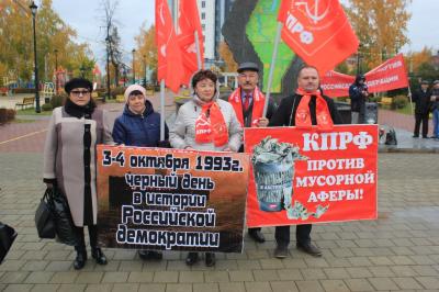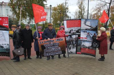 Несмотря на дождливую погоду, на площади Борцов революции в городе Тюмени собрались неравнодушные люди, среди них молодые коммунисты 1992 года рождения, которым были вручены партийные билеты. В 1993 году им был один год, но они чтят историю и светлую память о защитниках советской власти.