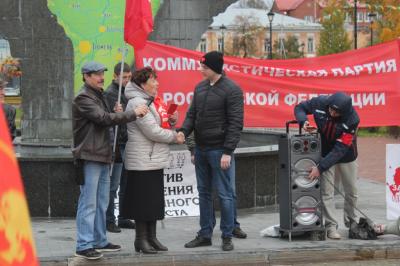 На митинге выступил член бюро обкома Левченко И.Г., который в своем выступлении сказал о том, что сегодня огромные миллиарды вкладываются в строительство и содержание ельцин-центров. Наша партия против такого растранжиривания бюджета России. Стихи собственного сочинения прочитал Сергей Новоселов. Затем слово взял кандидат в депутаты Тюменской областной Думы Княжев Анатолий, который выступает, как правозащитник.