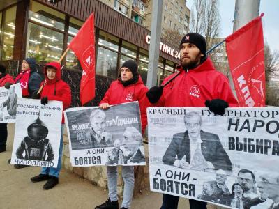 26 ноября саратовские активисты КПРФ провёли очередной пикет в поддержку «красного губернатора» Иркутской области Сергея Левченко и «красного директора» Совхоза имени Ленина Павла Грудинина.
