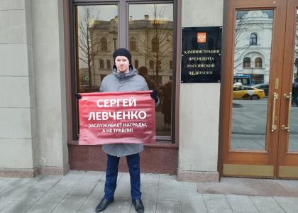Коммунисты требуют остановить грязную кампанию чёрного пиара, инициатором и идейным вдохновителем которой является руководитель администрации президента Антон Вайно. Открыл серию пикетов депутат Госдумы, руководитель МГК КПРФ Валерий Рашкин. Поддержали Левченко и депутат Госдумы Денис Парфёнов, и депутат Мосгордумы Николай Зубрилин, и рядовые коммунисты. Охрана спрашивает у участников акции документы и даже сообщает, что стоять в пикете возле здания АП запрещено, однако предоставить запрещающие документы не может.