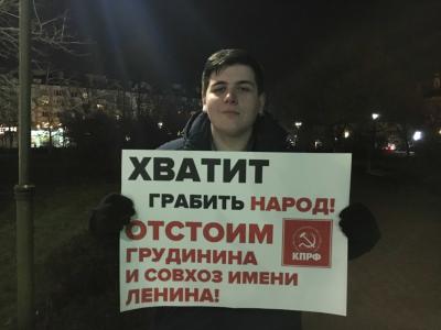30 ноября, несмотря на ненастную погоду, комсомольцы и коммунисты города Орла провели серию одиночных пикетов в защиту красного губернатора Сергея Левченко и руководителя совхоза им. Ленина Павла Грудинина.