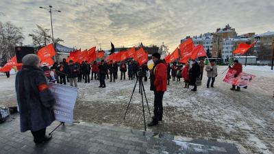 Протестная акция продолжилась в 15:30 на Центральной площади у памятника Ленина, где состоялся массовый пикет в защиту руководителей-коммунистов.