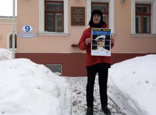 одиночный пикет с лозунгом «Нет палачу и убийце!» к старинному особняку, в