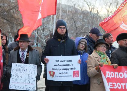 17 марта в рамках Всероссийской акции протеста КПРФ «За социальную справедливость! За достойную жизнь!» в сквере им. Андреевского челябинские коммунисты и сторонники провели митинг, в котором приняли участие активисты различных лево-патриотических партий и движений: представители Ленинского Комсомола, Союза Советских Офицеров, ВЖС «Надежда России», Левого Фронта, движения «За новый социализм», партии РОТ-Фронт, члены братской Коммунистической партии ДНР.