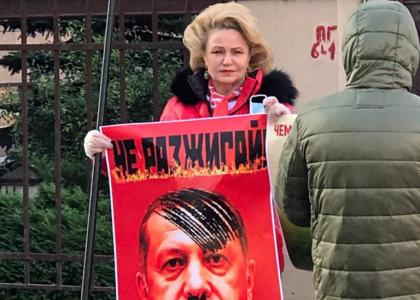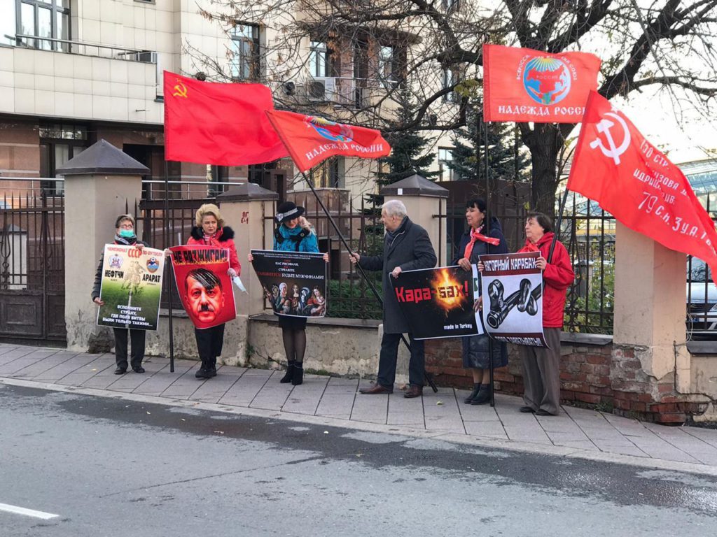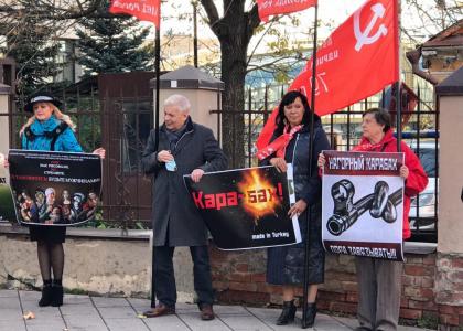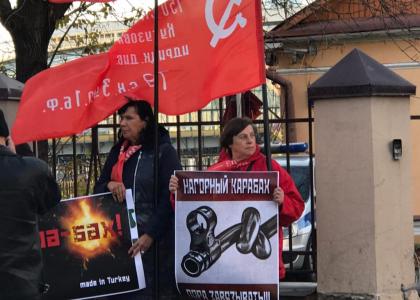Активисты движения во главе с Н.А. Останиной вышли к Посольству Турции с требованием остановить вооружённый конфликт в Нагорном Карабахе.
