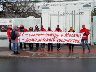 Вторая акция состоялась у здания, предназначенного для размещения в нем Ельцин-центра – усадьбы Бобринских-Долгоруковых на Малой Никитской улице. Под непосредственным руководством депутата Госдумы Александра Ющенко и Владимира Родина ее участники - коммунисты и активистки Московского городского отделения ВЖС «Надежда России» развернули транспарант со словами «НЕТ ельцин-центру в Москве, ДА - Дому детского творчества», и ответили на многочисленные вопросы проходящих и проезжающих мимо москвичей, которые, как оказалось, даже не догадываются, под какие цели планируется использовать отреставрированную усадьбу.
