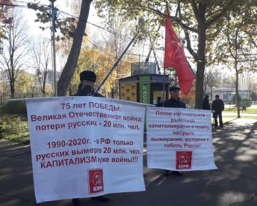 Мероприятие прошло в течение часа в парке 30-летия Победы, где в выходной день было много гуляющих жителей краевой столицы. Все они увидели и прочитали плакаты, направленные против рыночно-колониального капитализма и вымирания русского народа, против развала системы здравоохранения и образования, против дистанционного обучения и административно-политических репрессий.