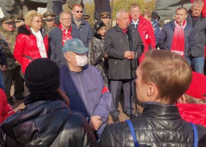 Перед собравшимися выступили заместитель Председателя ЦК КПРФ В.И. Кашин и член Президиума ЦК КПРФ Н.М. Харитонов, а также С.И. Кузьмина (мать Сергея Кузьмина, погибшего в октябре 1993 года).