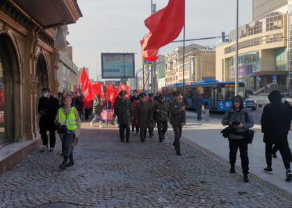 Затем состоялось шествие по тротуару Краснопресненской улицы. Активисты Московского городского отделения ЛКСМ РФ во главе с Д.А. Багиной несли портреты погибших в октябре 1993 года защитников Советской Конституции, России и народовластия.