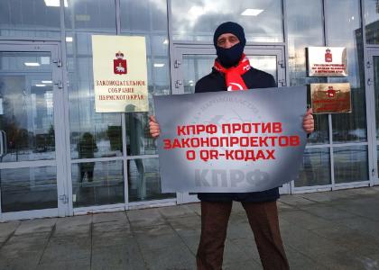 На этой неделе коммунисты Пермского края вышли в одиночные пикеты против законопроектов о QR-кодах. Напомним, что недавно в Государственную Думу были внесены инициативы, согласно которым вход в публичные места и перевозки авиарейсами и поездами будут осуществляться только по QR-кодам.