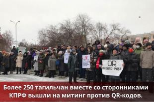 4 декабря более 250 тагильчан вместе со сторонниками КПРФ вышли на митинг против QR-кодов.