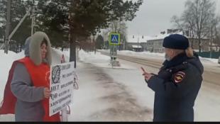 В посёлке Хвойная Новгородской области во время проведения выездного заседания правительства Новгородской области коммунисты и инициативные жители района вышли с одиночными пикетами.