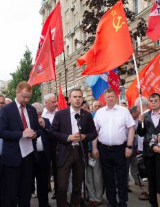 В четверг, 28 июля 2022 года, в полдень москвичи и жители Подмосковья собрались напротив Посольства США в Москве на Новинском бульваре на встречу с депутатами-коммунистами.