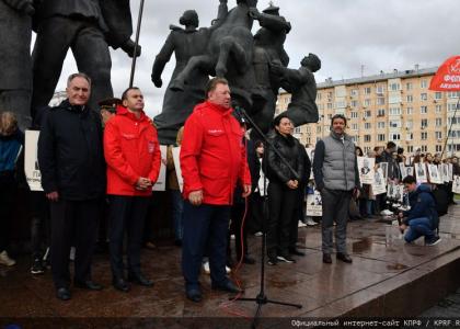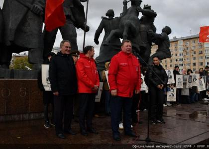 «За советскую власть! Правое дело защитников Дома Советов восторжествует!», - участники траурного мероприятия дружным скандированием поддержали лозунги оратора.