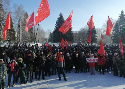 Более 600 человек вышли на митинг КПРФ против роста тарифов ЖКХ, который прошел в столице Алтайского края 12 февраля. В митинге приняла участие депутат Госдумы, первый секретарь Алтайского крайкома КПРФ Мария Прусакова, депутаты Алтайского краевого Заксобрания, Барнаульской гордумы, общественники, жители краевой столицы, городов и районов Алтайского края.